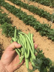 Bean thinking about healthy eating? Try adding green beans into your summer dishes to enjoy the health benefits of eating farm fresh and in season. The green bean is a herbaceous plant belonging to the legume family and has been around for a very long time. Some say that there are over 100 varieties of beans differing in taste, color and size. Green beans can be green, yellow, purple and speckled and they grow both on bushes or on plants with long vines. We grow three different kinds of beans here on our farm including green, yellow wax and Romano (aka Italian beans).
