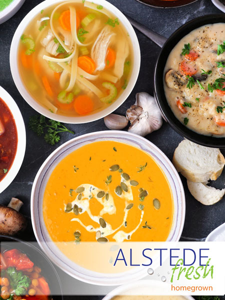 Pick up a container of our delicious, Alstede fresh homemade soup for dinner tonight.