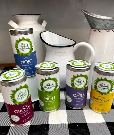 The Naked Botanical herbal teas – produced locally in Mendham, NJ. Sold in containers of 15 bags. These herbal teas come in a variety of flavors: Feeling Groovy, Everyday Mojo, The Best Mint, Kick Back and Chill, and Happy Tummy Happy Life