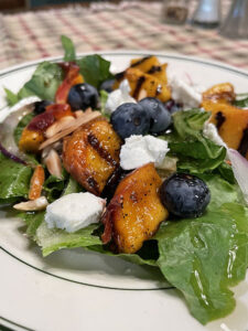 Grilled Peach, Blueberry, and Mixed Green Salad
