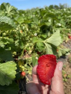 One bite and you will taste (and see) the difference between local farm fresh strawberries and the supermarket variety. Not only do local berries taste sweeter, they also are red all the way through as they are fully grown. Local strawberries are allowed to ripen in the fields and picked at the peak of freshness. They do not have to travel long distances and therefore are ripe and juicy by nature. Supermarket berries are picked before fully mature and strawberries do not ripen after picking so they remain unripe and will have white centers and taste less juicy and sweet. Supermarket strawberries are typically 2-4 days old by the time they reach the shelves which affects the flavor and they are less sweet. Our strawberries are picked fresh each morning and ready for you in our farm store, farm stands and farmers markets that same day. Our strawberries taste best and sweeter also because of our farming methods. We grow our strawberries in well drained, compost enriched soil. Taste the difference by shopping & eating local today.