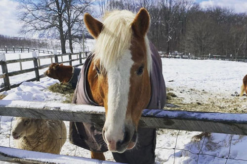 Our cows, goats, sheep and horses are outside during the winter months (our Chester location only) when our farm store is open. You are welcome to visit them – no tickets are required! They also love having a snack! Animal feed bags are available for purchase in our farm store.